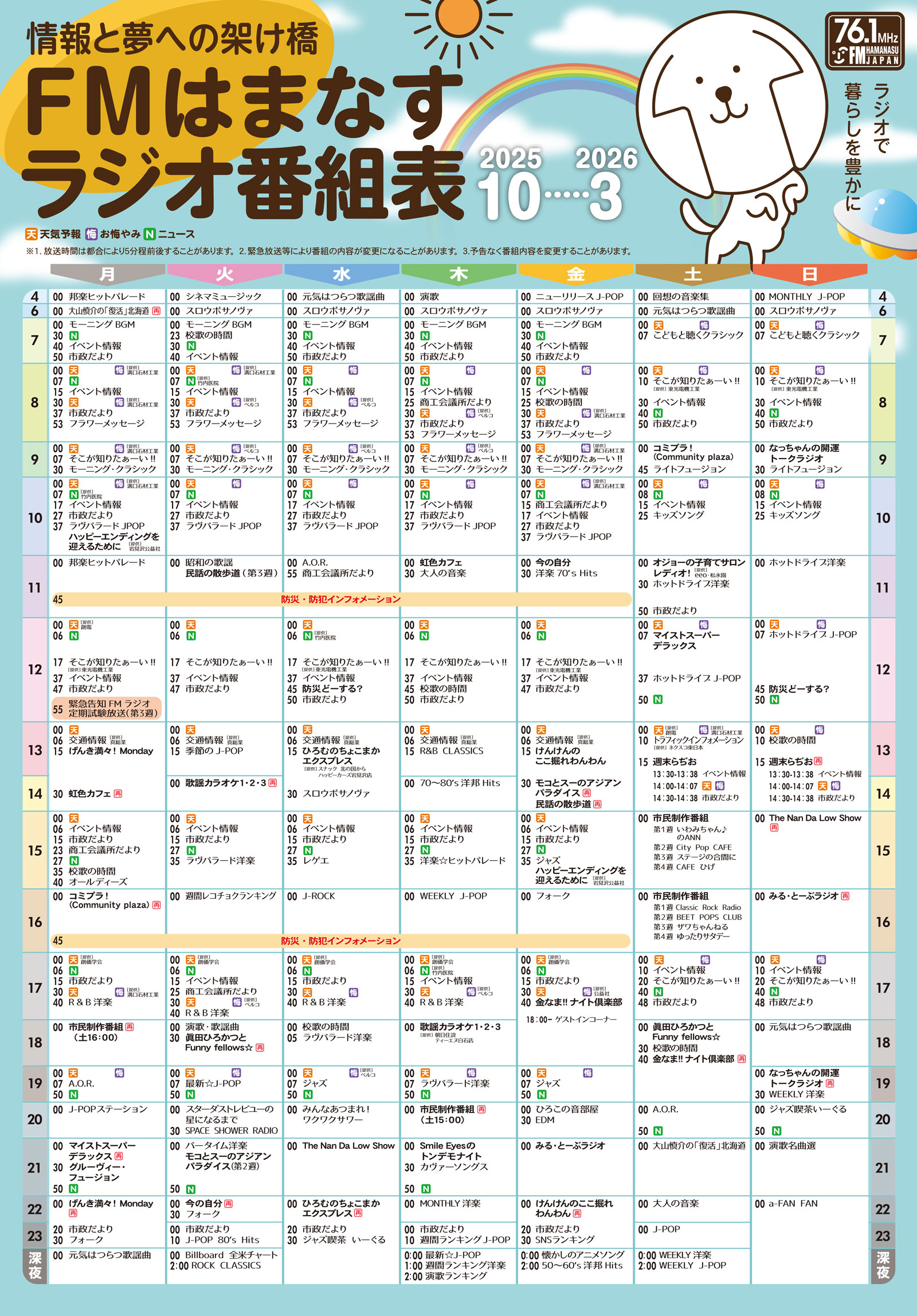 FMはまなす ラジオ番組表 2025年10月~2026年3月